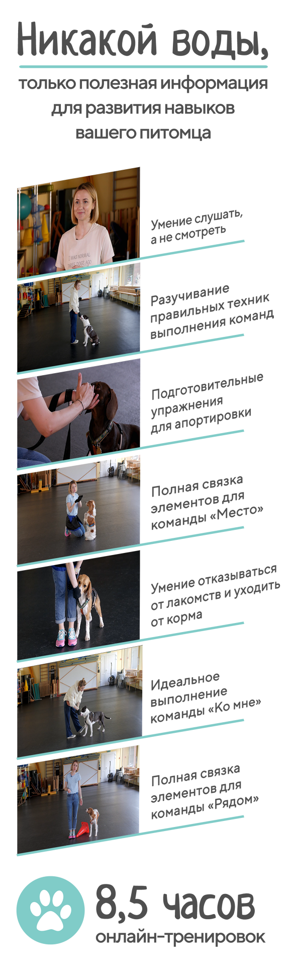 И мне есть, чем поделиться с Вами, даже если Вы матёрый собаковод и учите других дрессировке. Вы получите все инструкции, теоретические разборы и практические упражнения, которые значительно облегчат процесс воспитания Вашего друга и сильно сэкономят вашу энергию.